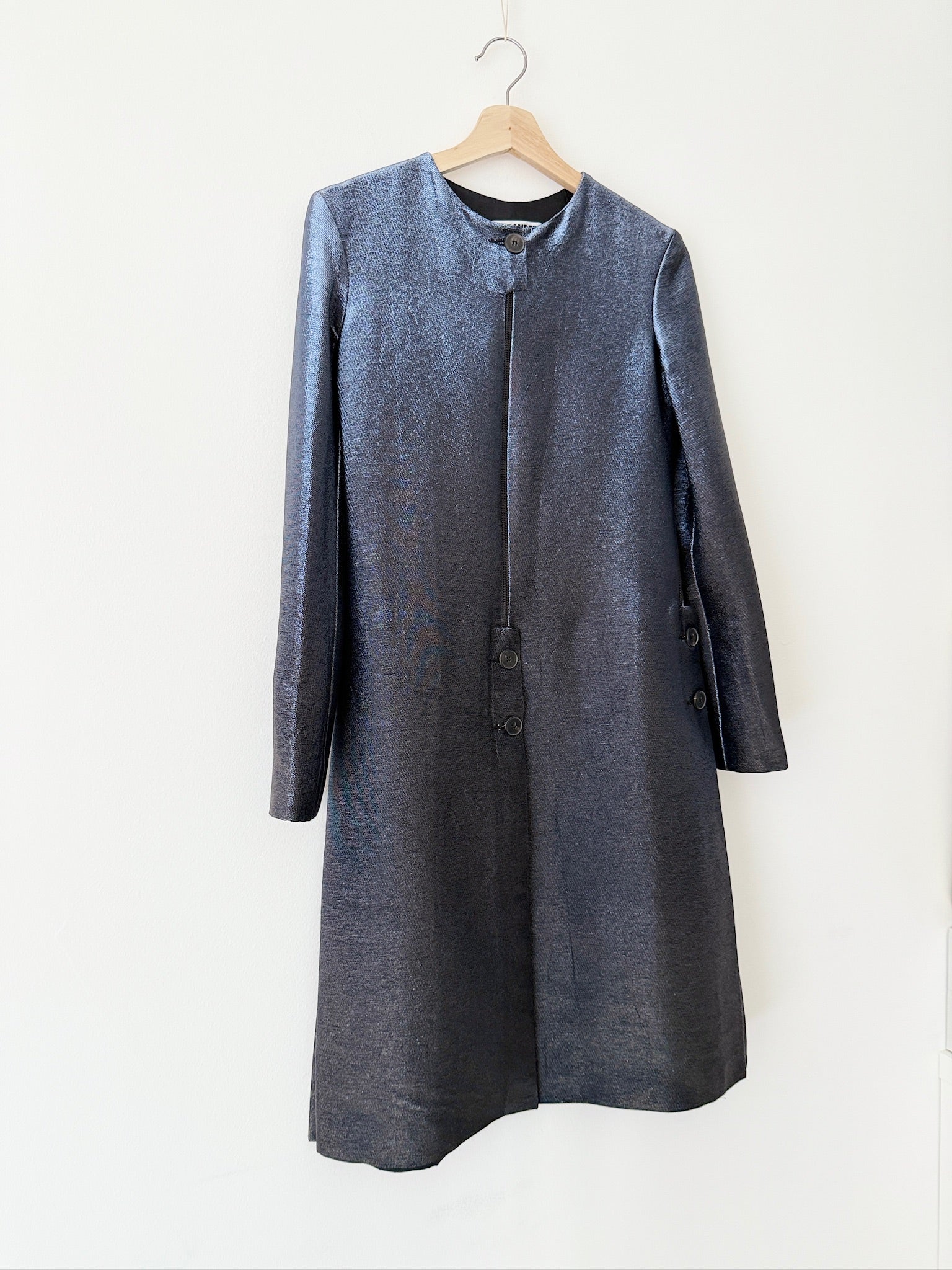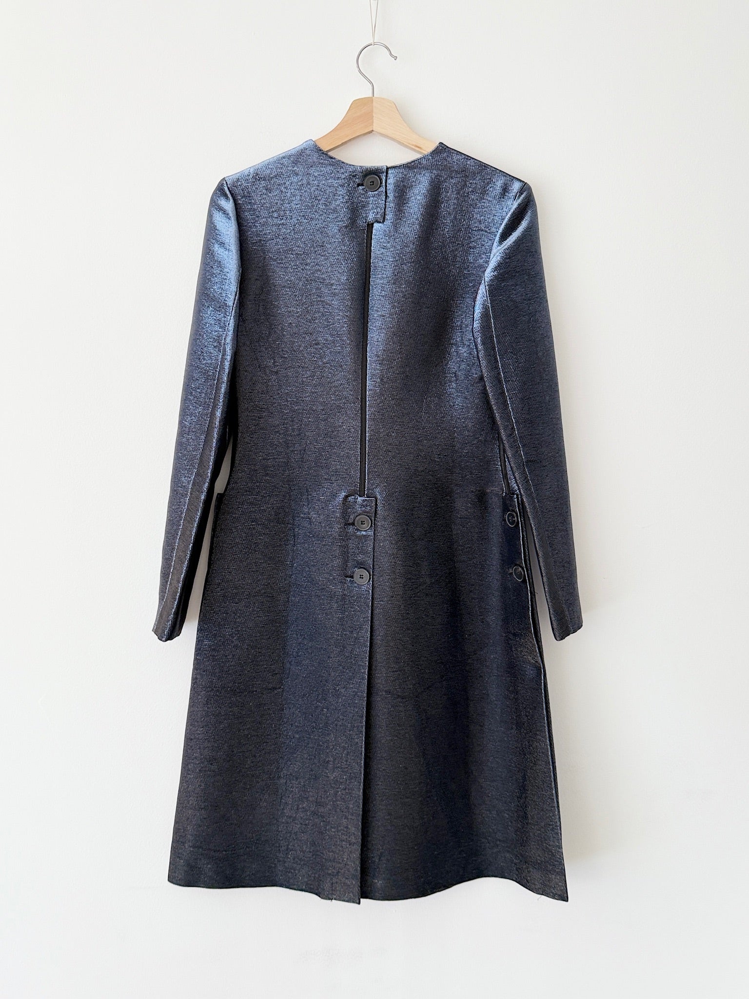 This dress features an incredible fabric that displays a stunning sheen from different angles. It is an extremely rare collectible piece.